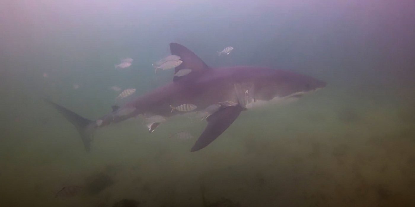 Dans une vidéo filmée par un autre plongeur, on peut voir le requin de près de trois mètres de long s'approcher à portée de main des plongeurs. Il était entouré de dizaines de poissons-pilotes.
