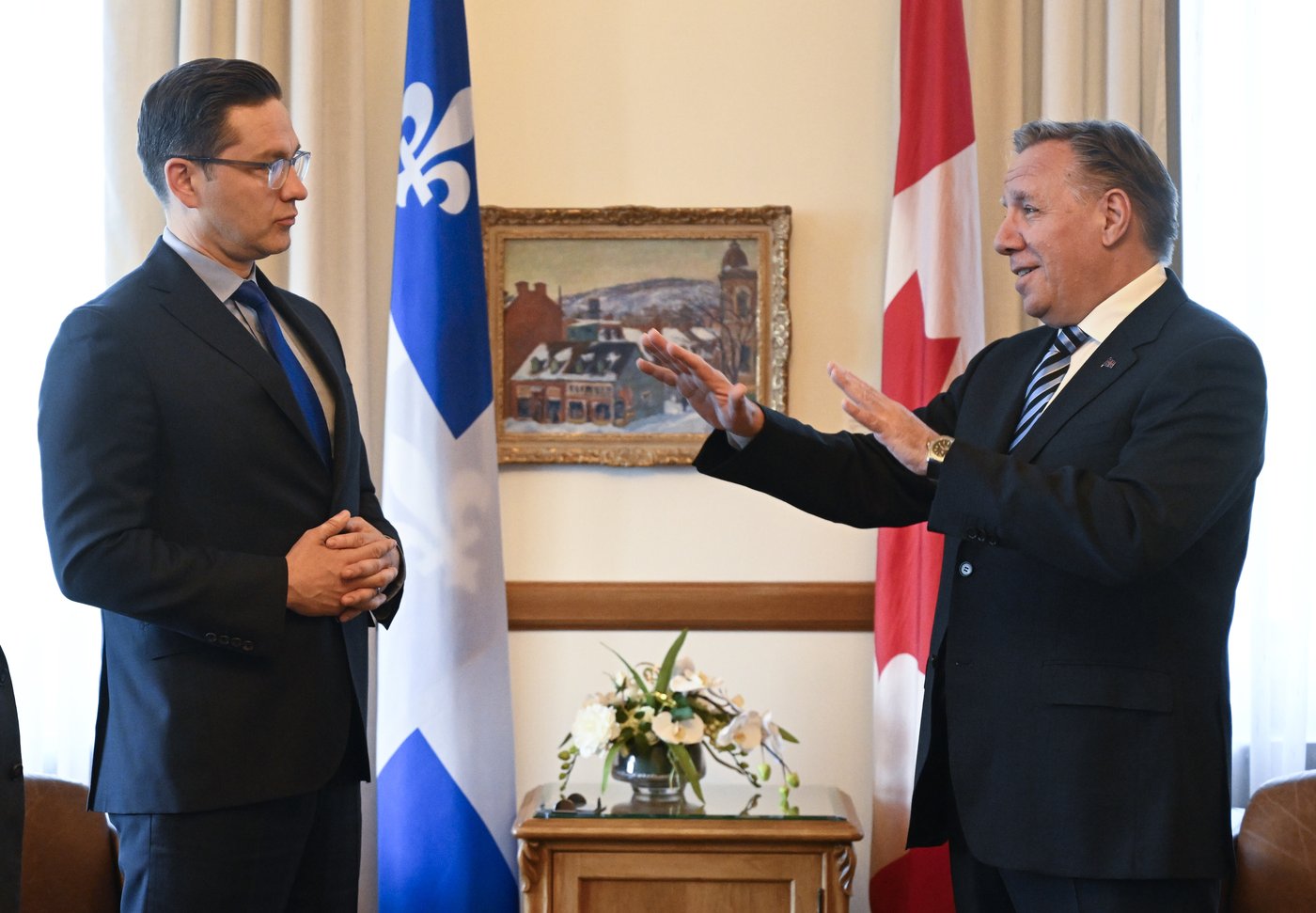 Or, la relation qu'entretient M. Legault avec les deux conservateurs est loin d'être semblable. À titre de comparaison, il a fallu huit mois après l'élection de M. Poilievre comme chef conservateur pour qu'il rencontre le premier ministre, mais trois semaines lorsque M. O'Toole est entré en fonction.