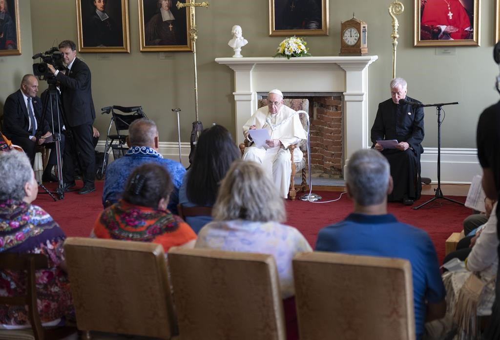 François a demandé pardon pour les abus commis par certains membres de l'Église catholique ainsi que pour la destruction culturelle et l'assimilation forcée, mais a déclaré que les pensionnats constituaient un génocide seulement lorsqu'il a été interrogé à ce sujet par des journalistes lors de son vol de retour à Rome.