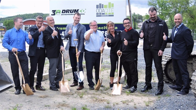 Les promoteurs d’Odacité Immobilier, responsables de ce projet, soit Steve Richard, président, et Dany Chabot, vice-président des opérations, ainsi que le maire Luc Provençal ainsi que d'autres représentants de la Ville de Beauceville, étaient sur place pour procéder à cette pelletée de terre.