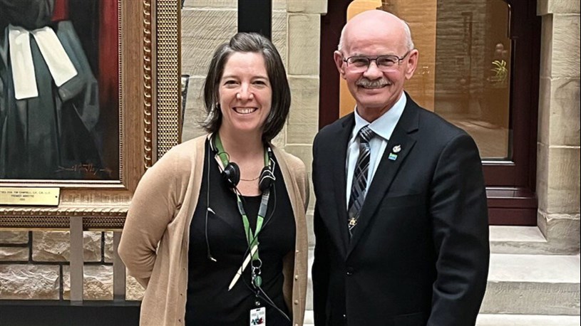 À la demande du député, l’allocution en Chambre s’est faite en présence d’Émilie Vachon, interprète pour la Chambre des communes et arrière-petite-fille des fondateurs. Elle a assuré la traduction simultanée en anglais du discours.