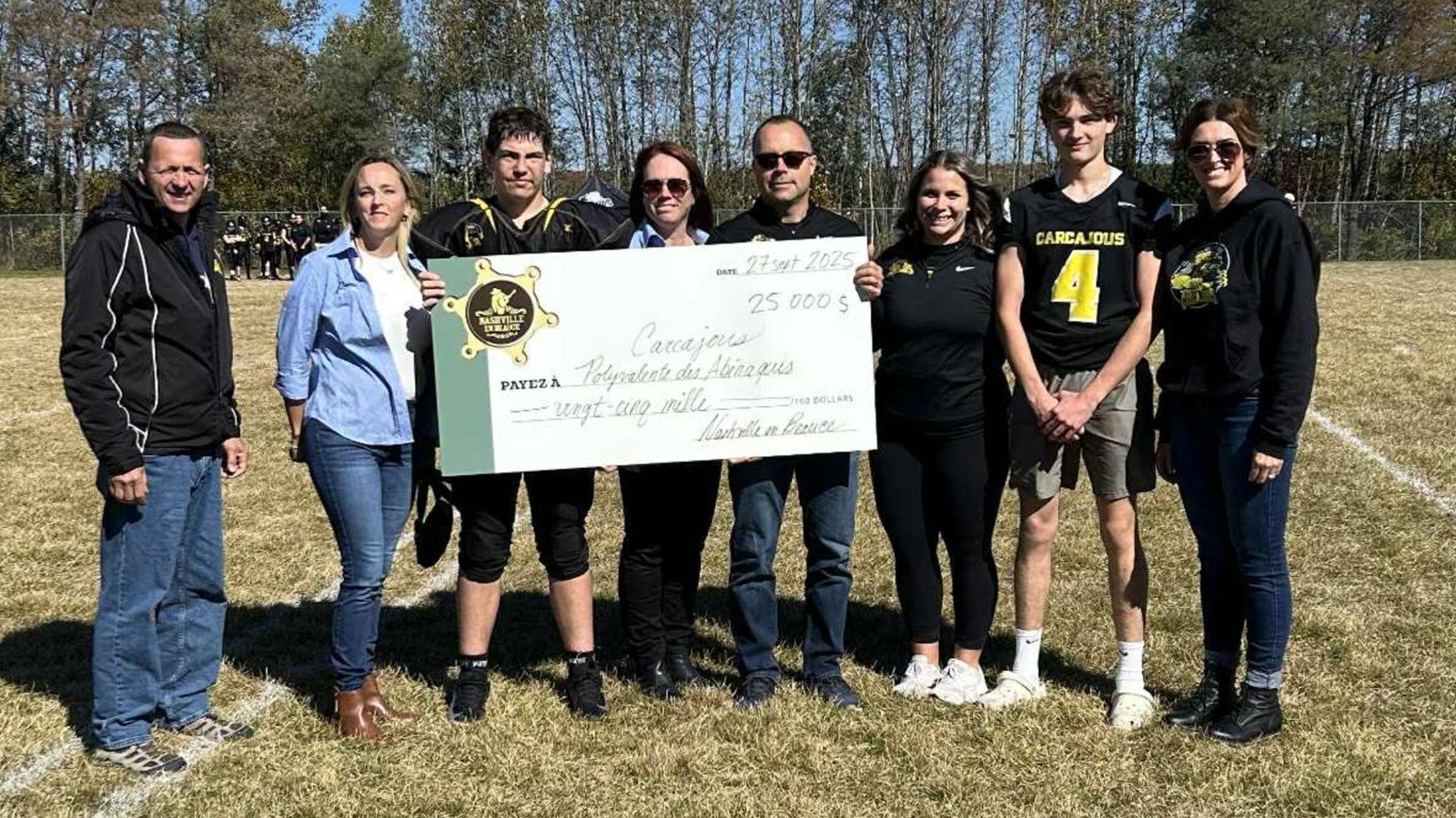 L’organisation de Nashville en Beauce vient de remettre un montant de 25 000 $ à l’équipe de football Carcajous de la Polyvalente des Abénakis de Saint-Prosper.
