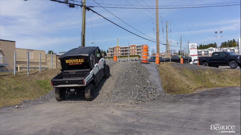 « C’est un circuit qu’on a fait aux spécifications de GM pour pousser notre AT4X à son maximum. Il a notamment un pare choc avant entièrement en fonte, plusieurs plaques de protection additionnelles en dessous. (...) Une autre particularité c’est sa suspension multimatic avec les réservoirs externes pour lui permettre de manoeuvrer à travers les bosses, quelque chose d’assez particulier qu’on peut ressentir sur le circuit », a détaillé Raphaël Beaulieu de St-Georges GM.