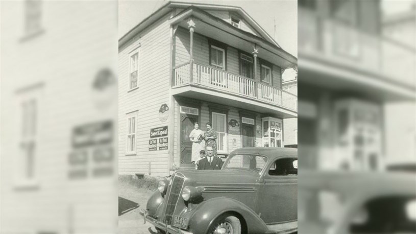 Il y a 50 ans, le secteur de la 1re avenue dans l'ouest, entre la 19e et la 25e rue, était un pôle commercial important comportant plusieurs magasins, bureaux, épiceries, banque, librairie, restaurant, salle de quilles, salle de billard, médecin, pharmacie, dentiste, poste de taxi, coiffeuses, barbiers, quincaillerie, cordonniers, etc. L'un des plus fréquentés fut le restaurant de Sinaï Gilbert qui ouvrit dans les années '30. On le voit sur la 1re photo, en arrière de son auto et devant son restaurant en 1937. Les 2 photos suivantes nous montrent le même secteur au début des années '40, lors de la parade annuelle de la fête de la Saint-Jean Baptiste. Nouveauté sur ces deux photos par rapport à la première: on a installé sur le devant une enseigne indiquant le nom de ce commerce: «CAFÉ SINAÏ GILBERT bon repas». Dans la vitrine, sont collées sur les vitres des lettres blanches formant les mots LE THÉ SALADA. Plusieurs publicités sont placardées sur le mur du côté gauche: Vogue tabac à cigarettes, Alouette tabac naturel, Buvez Coca-Cola glacé, Buvez Pepsi-Cola il étanche la soif.