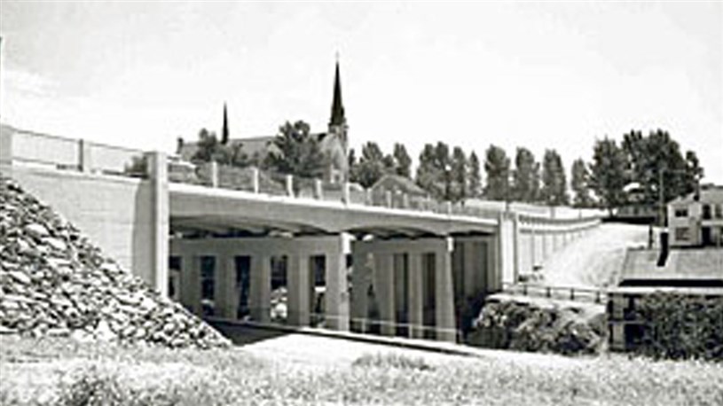 À l'origine, ce moulin fut érigé à cet endroit en raison du cours d'eau qui y passe, le ruisseau d'Ardoise dont on se servait pour actionner la roue à aubes faisant fonctionner les machines à ses débuts, l'électricité l'ayant remplacé au fil des décennies. La 2e photo illustre le développement de cette partie de la ville vers 1953, avant la construction du viaduc. On voit le moulin Brochu en bas, à l'extrême droite de la photo. J'ai agrandi cette partie de la photo pour mieux voir le moulin (photo 3). Il vivait ses derniers moments. Jusqu'en 1955, les déclivités importantes de chaque côté du ruisseau avaient pour conséquence de scinder en deux le boulevard Lacroix qui devenait une artère majeure de la ville. On a décidé d'ériger un viaduc (photo 4) à cet endroit (en 1955), qui a causé la perte du moulin Brochu, qui a dû être démoli. Ce n'est plus aujourd'hui qu'un souvenir. Une chance qu'il nous reste au moins des photos. Ah le progrès, avec ses bons et ses mauvais côtés.