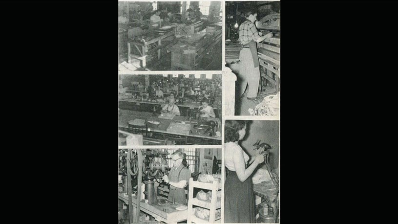 J'ai réussi à trouver une photo de 1951 nous montrant les ouvriers et ouvrières au travail, tant pour les talons que pour les chaussures (photo 7).
