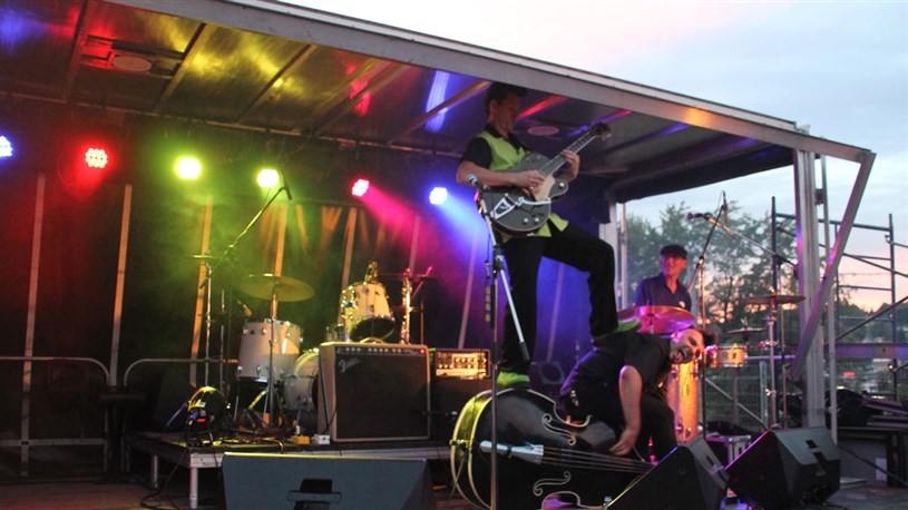Sur la scène extérieure, les spectacles sont offerts gratuitement durant le festival. Jeudi, la foule a pu bouger et danser avec le Rockabilly Rules. Ce trio a été énergique sur scène. Le groupe thetfordois composé de Steve Paradis, Carl Upright et Jean-Yves Leroux a pu interpréter des pièces de légendes de la musique, dont Elvis, Carl Perkins et même Johnny Cash. Le DJ Lucky Luc et Rockabilly Rules ont donc bien réchauffé la foule avant l’arrivée du vieux routier, Alan Gerber.