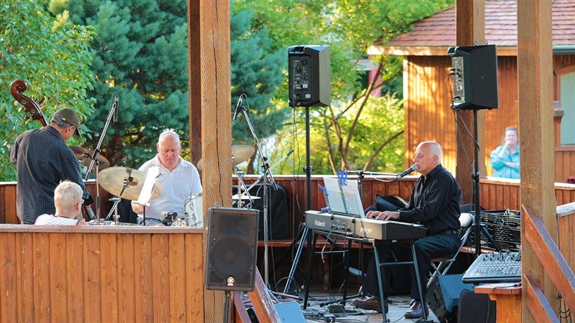 Le Trio Sérénade est composé d’Yvon Lacasse à la voix. Monsieur Lacasse est bien connu dans la région puisqu’il a déjà été vendeur de piano chez Lamontagne. « J’ai acheté le premier meuble qui allait dans ma maison avant d’acheter quoi que ce soit d’autre. C’était un piano. Il était chez Lamontagne à l’époque et c’est lui qui m’a vendu mon piano », raconte Caroline Veilleux, chef de division au développement culturel pour la Ville aux quelque 600 spectateurs présents à l’Arboretum. Ça fait 60 ans que Monsieur Lacasse joue du piano en public. Au cours de sa carrière du musicien, il a eu plusieurs fois l’occasion d’aller faire de la musique sur des bateaux de croisières. Aujourd’hui, Monsieur Lacasse est retraité, mais il continue de faire de la musique pour le plaisir. Le trio est également composé de Martin Vigneault à la batterie. Monsieur Vigneault a deux DEC en musique. Le premier en saxophone classique et l’autre en batterie populaire. Le trio Sérénade est également formé de Nelson Gamboa à la contrebasse. Monsieur Gamboa est originaire de Santiago au Chili et demeure maintenant à Québec.