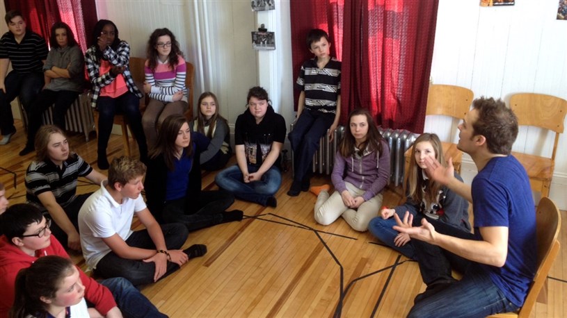 Les élèves du cours de théâtre du profil artistique de l’École Jésus-Marie de Beauceville ont eu le privilège de recevoir une classe de maître du comédien et metteur en scène Guillaume Perrault.