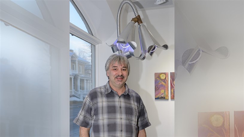 Toujours sous le thème de la nature et des fleurs, Claude-Félix Pomerleau, artisan-machiniste de Saint-Benoît-Labre, a présenté des œuvres sorties de son atelier d'usinage. Elles sont à la fois brutes par les matériaux qui les composent, mais toutes aussi douces et délicates par les formes et la délicatesse de ce travail minutieux.