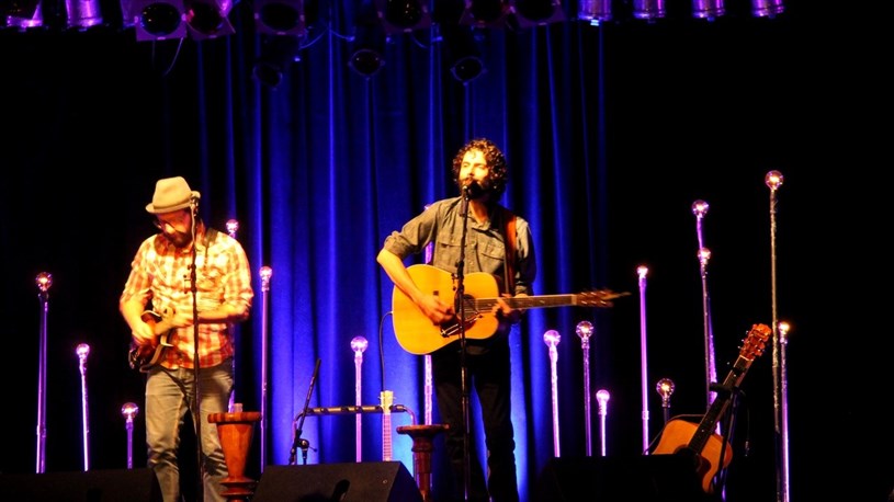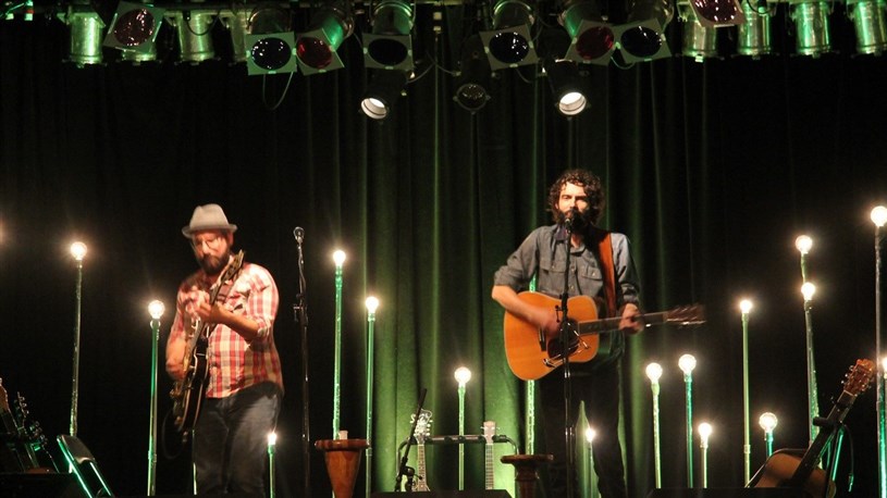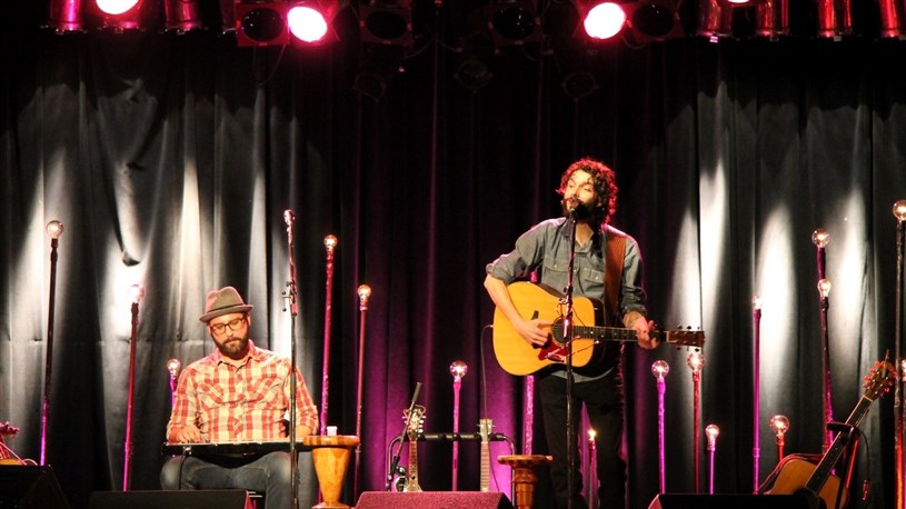 Dès son apparition, Alexandre Poulin dégage une énergie chaleureuse qui témoigne de son charisme inné. Un musicien et une panoplie d’instrument –beaucoup de guitares – l’accompagnent sur scène. Un sourire à la foule et le spectacle commence.