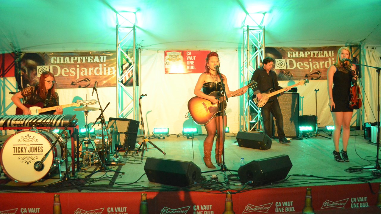 L’ouverture officielle du festival a eu lieu vers 20 h sous le chapiteau Desjardins. Après une courte cérémonie de présentation, le groupe de country-rock s’est emparé de la scène pour faire danser les festivaliers. Le trio formé de Johanne Aubé à la voix et à la guitare, Michelle Lambert aux claviers, percussions et guitares et Vicky Vachon au violon et à la voix, accompagné du bassiste, Billy Roy, a puisé dans son répertoire pour interpréter plusieurs de leurs compositions énergiques, dont les pièces « Je crois en toi », « Je tiens à toi » et « Facebook ». Lors de l’intermission, Sylvie Roy s’est occupée de continuer à faire danser la foule en faisant jouer de nombreux succès country.