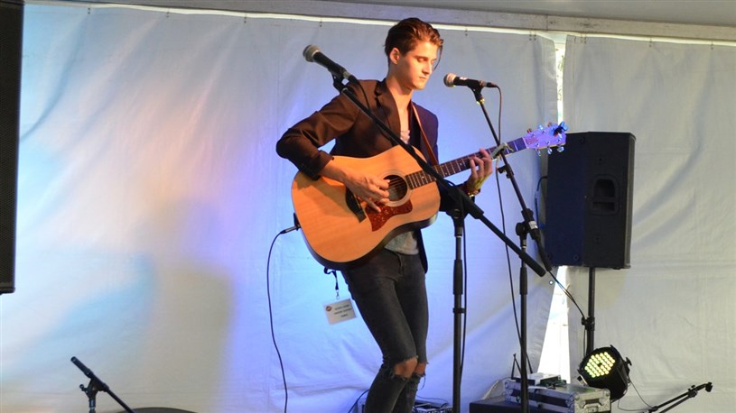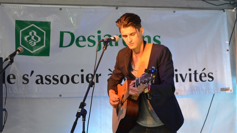 L’artiste Vicent Dupont a offert tune prestation intime samedi après-midi sur la scène Oasis tropical Desjardins dans le cadre du Funfest Weekend de Saint-Georges.