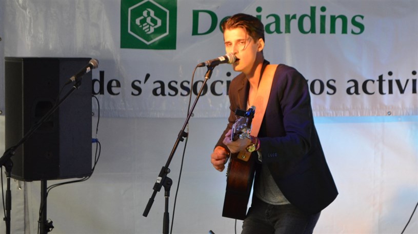 Le jeune musicien de Sainte-Justine a offert plusieurs de ses compositions, dont « Chandail de laine », « À contresens » et « Fou » ainsi que quelques reprises en anglais. L’Etcheminois de 22 ans a également interagi avec les gens rassemblés sous la tente à la Place de l’église dans l’ouest de la ville, se permettant quelques blagues avec eux.