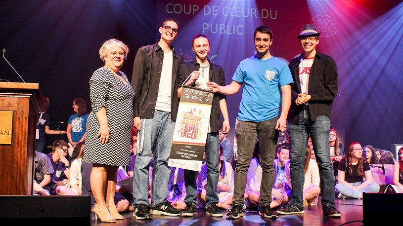 Le public a voté pour Éric-Pierre Drouin, Samuel Vachon, Émile Gagné et Raphaël Lambert-Simard de l’École secondaire Veilleux pour leur interprétation de « Chu un rocker » d’Offenbach.