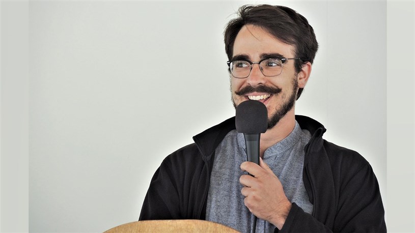 Samuel Duval, stagiaire au Service des loisirs et de la culture de la Ville de Saint-Georges, à la conférence de presse annonçant la programmation estivale 2018 au parc des Sept-Chutes de Saint-Georges, jeudi le 24 mai 2018.