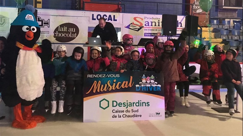 En soirée, tous étaient conviés au Rendez-vous musical Desjardins qui se tenait à l’aréna. Des représentants de Desjardins étaient sur place pour remettre des certificats d’achats locaux. La patinoire s’est transformée le temps d’une soirée en plancher de danse ; même Nouky, la mascotte, s’est jointe à la danse. Chocolat chaud, maquillage, kiosque de manucure, bar à surprises, projection de film, attendaient ceux qui étaient présents. La soirée s’est terminée par un feu d’artifice.