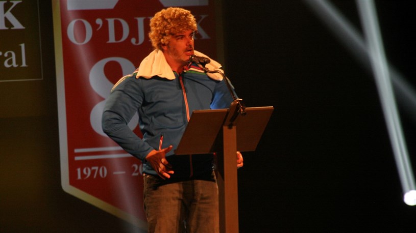 Le premier personnage qu’a fait découvrir Réal Béland au public est celui de Steve Odjick, un ancien hockeyeur devenu conférencier à cause de ses « trente-douze » commotions cérébrales. Disons simplement qu’il était content d’avoir son portefeuille pour pouvoir se souvenir de son nom.