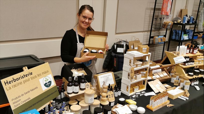 Aussi, parmi les exposants, on retrouve le stand Herboristerie: La racine pour tous les maux, où Marie-Ève Desjardins a concocté des produits de soins et de maisons exempts d'ingrédients nocifs.