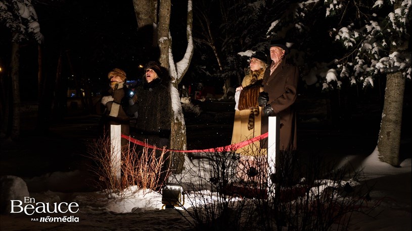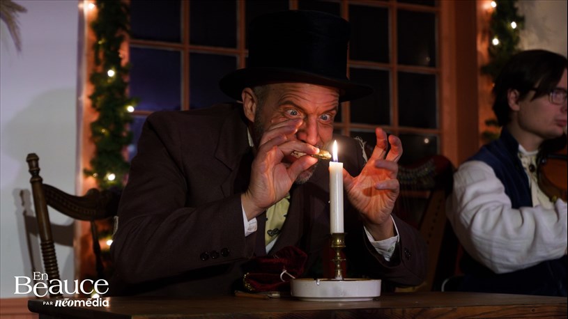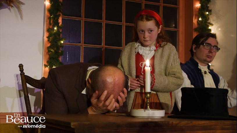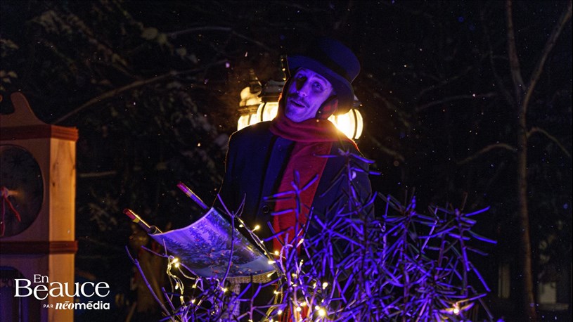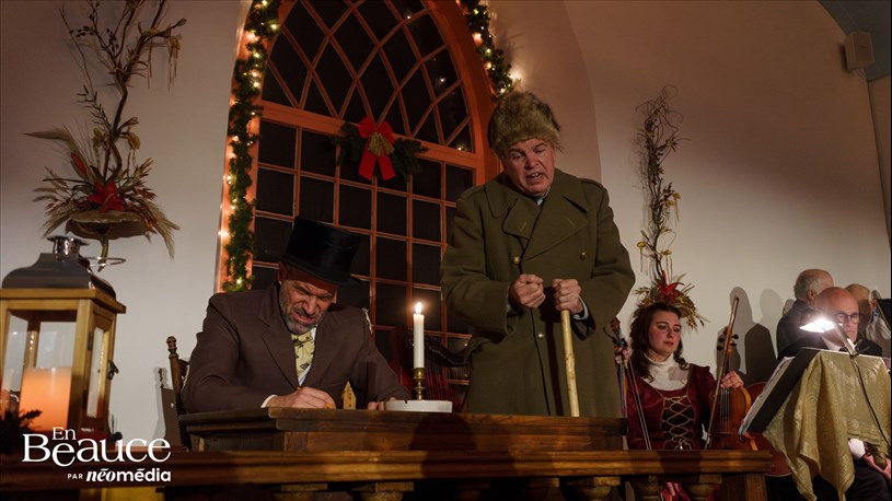 Animé par une cinquantaine de comédiens, choristes et musiciens, ce spectacle se déroule en deux temps. D’abord on se promène sur le sentier enneigé du Jardin Harbottle, accompagné de Mlle Labonté et Mme Rockford, un duo haut en couleur, porté par des personnalités opposées. -Les deux femmes mènent les spectateurs à la rencontre de différents personnages qui ont marqué l’histoire de Cumberland Mills. Ensuite, c’est à l’intérieur de l’église Saint-Paul-de-Cumberland que l’histoire se poursuit. Avec son allure grincheuse, Sam Miller vient perturber les célébrations de Noël des habitants du village. Interprété à merveille par Scott Mitchell, le personnage se retrouve face aux fantômes de Noël du passé, du présent et du futur. Il devra faire preuve de générosité pour changer le cours de l’histoire.