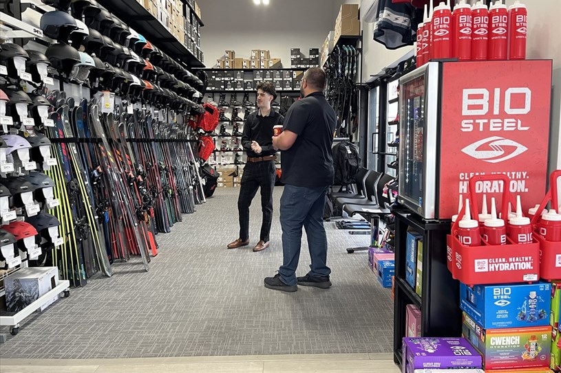 Du 28 novembre au 6 décembre, 17 élèves ont collaboré de près avec Dave Vachon, copropriétaire chez Ambiance Sports et son équipe, pour y développer leurs techniques de vente. Lors de scénarios de vente fictifs, à tour de rôle, les élèves ont expérimenté le rôle de conseiller aux ventes, tandis que monsieur Vachon jouait le rôle de client voulant acheter une nouvelle paire de skis.