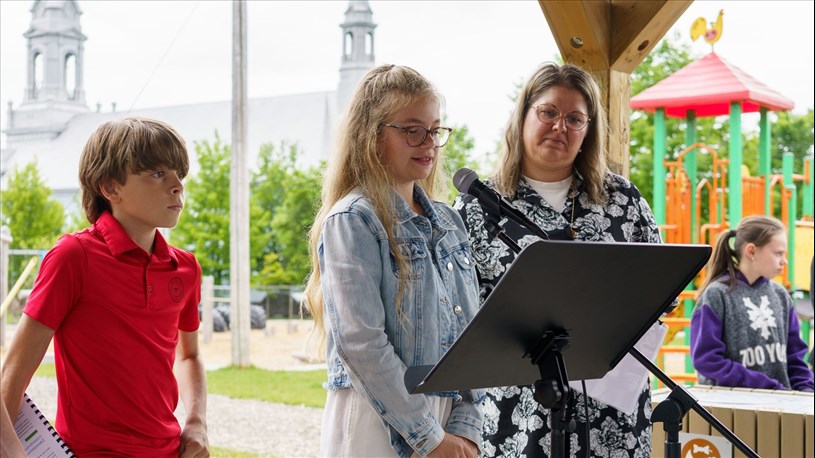 « Pour nous à la municipalité c'était incontournable de participer au projet de la cour d'école parce qu'une cour d'école c'est un milieu de vie, autant pour les enfants que pour toutes les générations. (...) Même si on est un village d'une petite grandeur, versus d'autres villages qui sont aux alentours de nous, on est un village dynamique, impliqué et engagé », a souligné Karine Champagne, mairesse suppléante de la municipalité de Saint-Honoré-de-Shenley.
