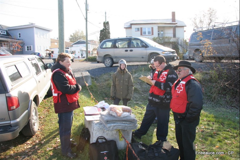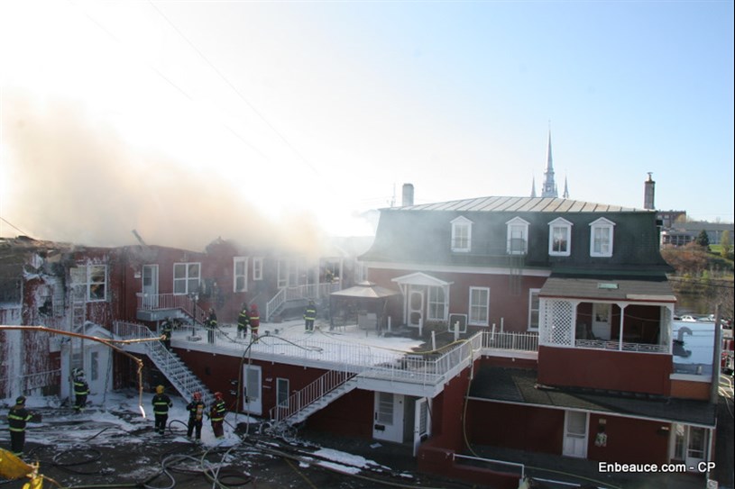 L'on aperçoit notamment Jean-Luc Gagné propriétaire des lieux en compagnie des gens touchés par l'incendie.