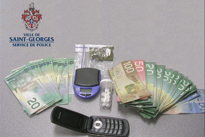 Le Service de police de la Ville de Saint-Georges a procédé à une perquisition sur la 6e Avenue, dans le secteur Ouest, à Saint-Georges. À cet endroit, les policiers ont mis la main sur une petite quantité de méthamphétamine et de cannabis, une somme en argent de 1500 $ et un cellulaire. Un homme et une femme dans la trentaine ont été arrêtés et ils comparaîtront par voie de sommation afin de répondre, entre autres, à une accusation de possession de stupéfiants dans le but de trafic
