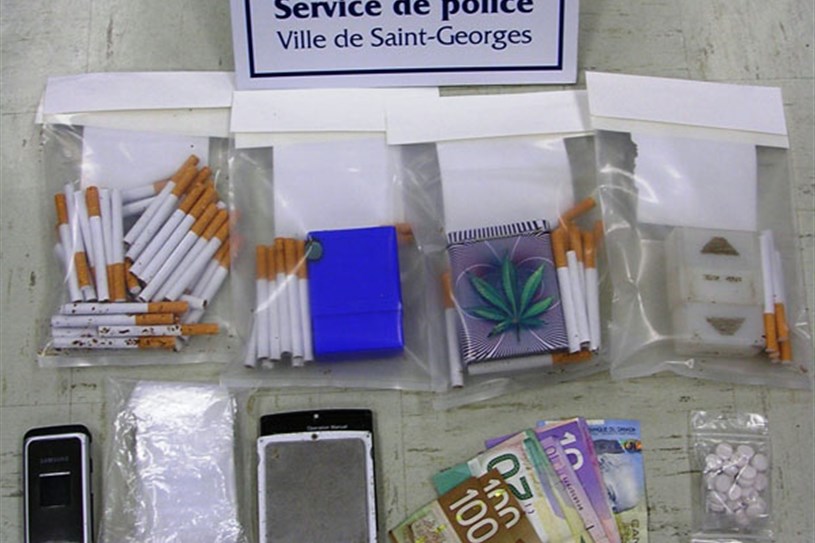 Les policiers du Service de police de la Ville de Saint-Georges ont procédé à une perquisition, jeudi, en fin d’après-midi, dans un appartement de la 2e Avenue à Saint-Georges. À cet endroit, les agents ont mis la main sur des comprimés de méthamphétamine, des cigarettes de contrebande, de l’argent provenant du fruit de la criminalité en plus de saisir un véhicule de marque Dodge Caravan. Le matériel saisi est estimé à 2225 $.