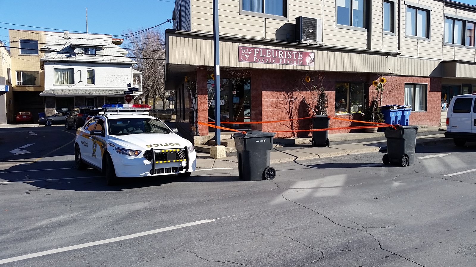 L'événement s'est produit sur le trottoir tout près du commerce Poésie Florale. Les propriétaires du commerce sont arrivés ce matin et les policiers étaient déjà sur les lieux. L'événement n'a pas nécessité la fermeture de la Promenade Redmond ni du commerce Poésie Florale.