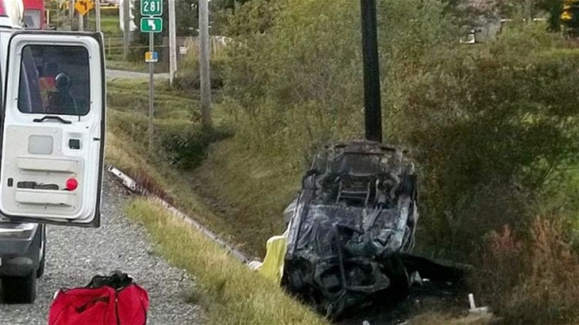 Si la conductrice de 42 ans a pu s’extirper de son véhicule in extremis, la victime Frédéric Mercier 18 ans de Saint-Magloire est demeurée coincée à l’intérieur de son automobile qui a pris feu. La dame s’en tire avec de légères blessures.