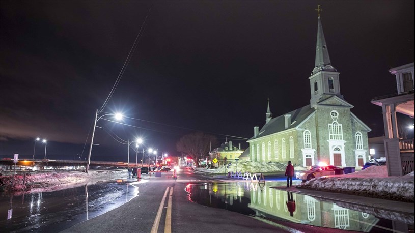 Toujours présent entre le pont de la route 108 et le Rocher, l'embâcle s'étendait sur une distance d'environ 5 km, avec des amoncellements de glaces flottantes ayant entraîné la fermeture de l'accès à l'île Ronde, complètement inondée.