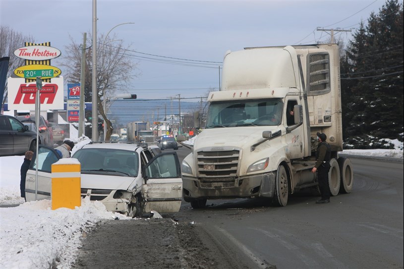 Le van, un véhicule sept places, a tenté de passer entre le camion et le trottoir alors que celui-ci souhaitait se rendre sur le stationnement du IGA.