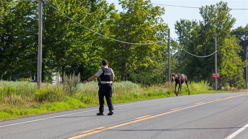 Ce matin, vers 8 h, les agents de la Faune du poste de Beauceville et des agents de la Sûreté du Québec de Robert-Cliche ont reçu un appel pour se rendre à la route 108 pour un orignal qui se baladait dans le secteur.