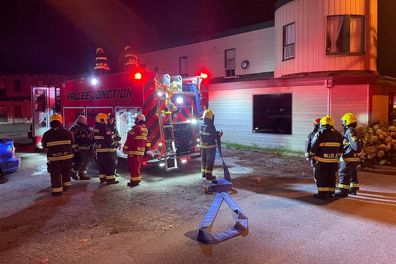 Le tout nouveau camion des pompiers de Vallée-Jonction a fait sa première intervention hier soir, vers 20 h 30, au Bar Astoria sur la rue Principale.