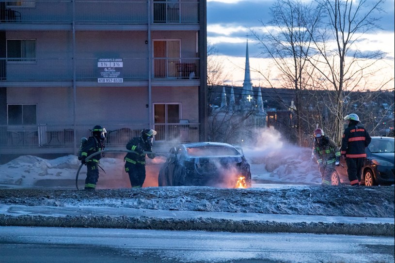 Le Service de Sécurité Incendie (SSI) de Saint-Georges a été appelé ce vendredi soir vers 19 h 20, à l'intersection de la 124e Rue et du boulevard Lacroix, pour un feu de véhicule.