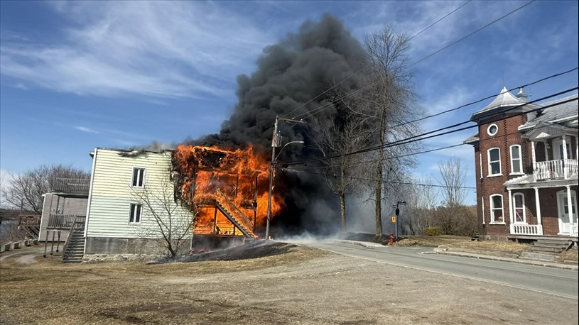 Un multilogement est présentement la proie des flammes au 271 Rue Notre Dame Sud à Sainte-Marie, près du Parc du Mai.