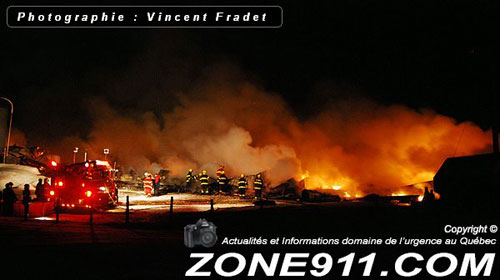 Lors de l'arrivée des pompiers de la localité, les flammes s'étaient déjà propagées sur l'ensemble de la bâtisse. Ils ont donc combattu pendant quelques heures pour venir à bout de cet incendie, mais en vain. La bâtisse est une perte totale. L'origine et la cause de l'incendie demeurent inconnues pour le moment. Pour plus de photos, rendez-vous sur le site www.zone911.com.