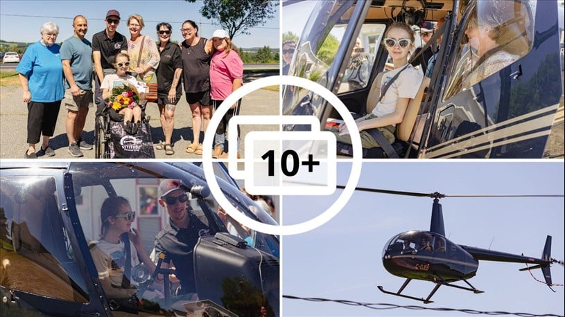 L’émotion était intense aujourd’hui à Saint-Éphrem, alors que Rosalie Camirand, entourée de ses proches, réalisait son rêve de faire un vol en hélicoptère.