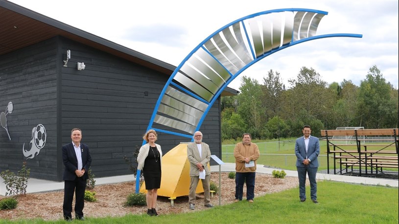 Terrain de soccer, sculture et sentiers pédestres