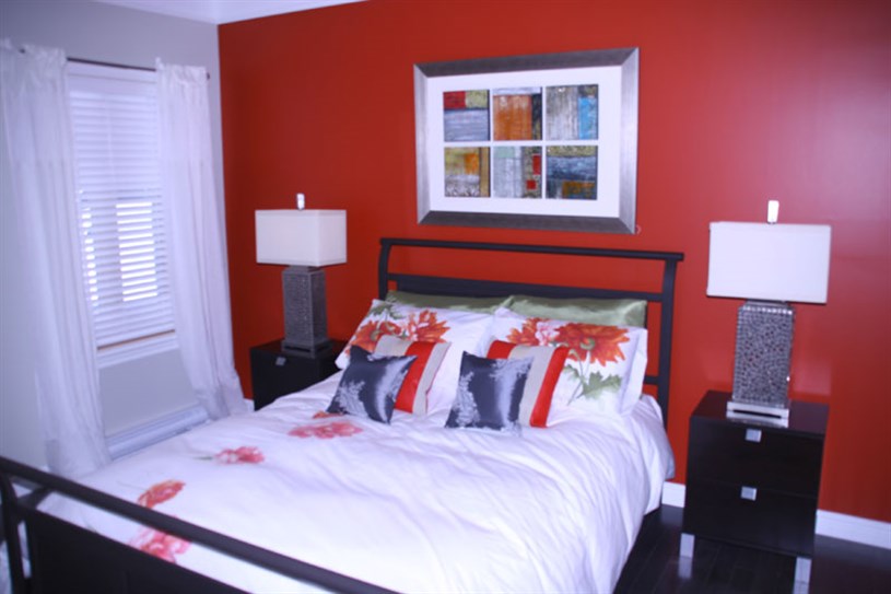 La maison comprend deux chambres à coucher dont une avec un walk in communiquant avec la salle de bains. Elle comprend également une salle de lavage indépendante et une salle de séjour décoré de belle façon avec un foyer au gaz recouvert d’un manteau de pierres collées.
