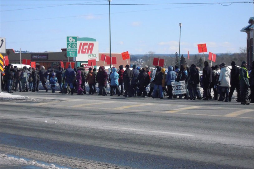 Quelques centaines de courageux manifestants ont ainsi bravé le froid et se sont réunis dès 13 h dans le stationnement de l’Ameublement Tanguay de Saint-Georges, munis de diverses pancartes, de banderoles et de leurs convictions.