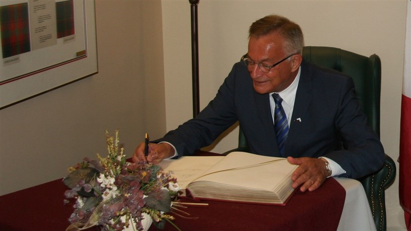 M. Duhaime qui représentait pour l’occasion le secrétaire général, Abdou Diouf. La délégation est arrivée escortée de la police. En sa compagnie se trouvait notamment le président d’honneur de Beauce Art, Jean-Louis Roy et ancien secrétaire général de l’Agence internationale de la Francophonie, Michel Robitaille Délégué général du Québec à Paris, El Habib Benessahraoui, chef du bureau de l’administrateur de l’OIF et Michel Grégoire, conseiller langue et culture de l’OIF.