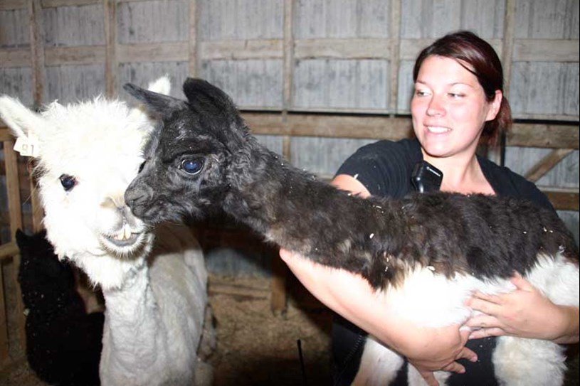 Responsable du Carrefour exotique, Vicky Giroux a dans ses bras sa nouvelle venue, Zelda, un alpaga de 7 jours.