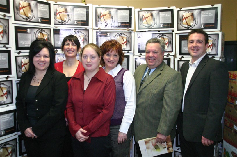 Diane Giroux d'EnBeauce.com, Isabelle Le Breton du Journal de Beauce, Claudia Fortin du CLD Beauce-Sartigan, Nicole Jacques de Moisson Beauce, Maurice Marcotte de Radio-Beauce et Pascal Thériault, président de Moisson Beauce.