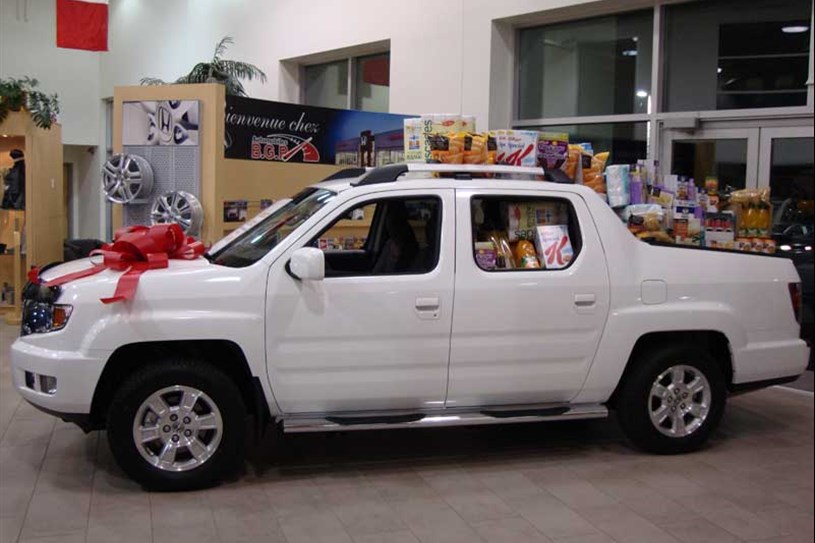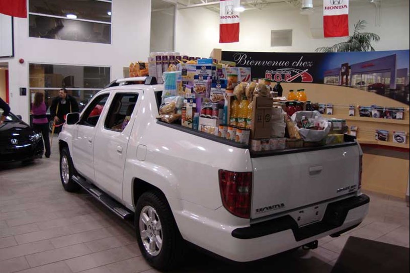 BGP Honda de Saint-Georges a agréablement surpris l’organisme Moisson Beauce en tenant l’activité «Remplissons un camion pour Moisson ». Grâce à l’initiative d’un employé, ils ont réalisés une collecte de dons auprès des collègues de travail afin de venir en aide aux plus démunis pour la période du temps des Fêtes. La direction a ensuite décidé d'appuyer l'équipe en allouant le même montant pour l’achat des denrées. Les efforts réunis ont permis de remplir à pleine capacité la boîte d’un camion Honda Ridgeline avec plus de 1000 $ de denrées.