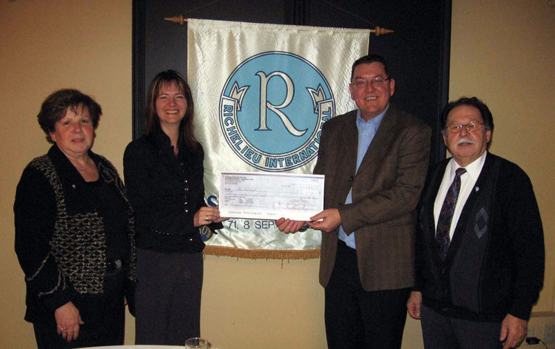 L’organisme communautaire le Bercail a pu compter au fil des ans sur la générosité des Richelieu. Au Bercail a reçu un chèque de 11 100 $ pour l’année qui vient de se terminer. Depuis 15 ans, le Club Richelieu a remis 143 922 $ à cet organisme par le biais de la vente de billets pour la Loto Richelieu.