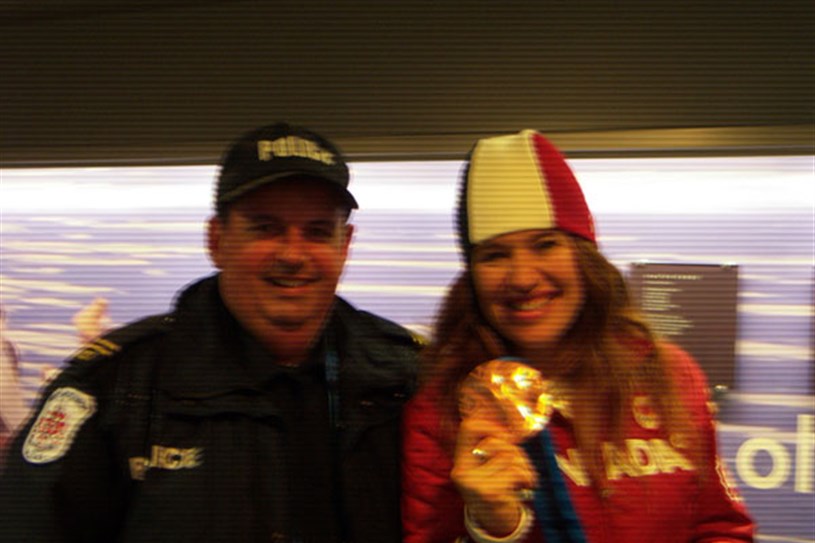 Les policiers se prêtent volontiers cependant à se faire prendre en photo avec de nombreux touristes provenant de partout à travers le monde. D’ailleurs, le sergent Drouin s’est fait photographier avec la patineuse de vitesse Clara Hughes qui a remporté la médaille de bronze mercredi dernier aux 5 000 mètres.