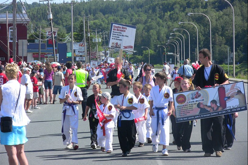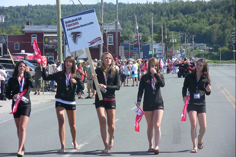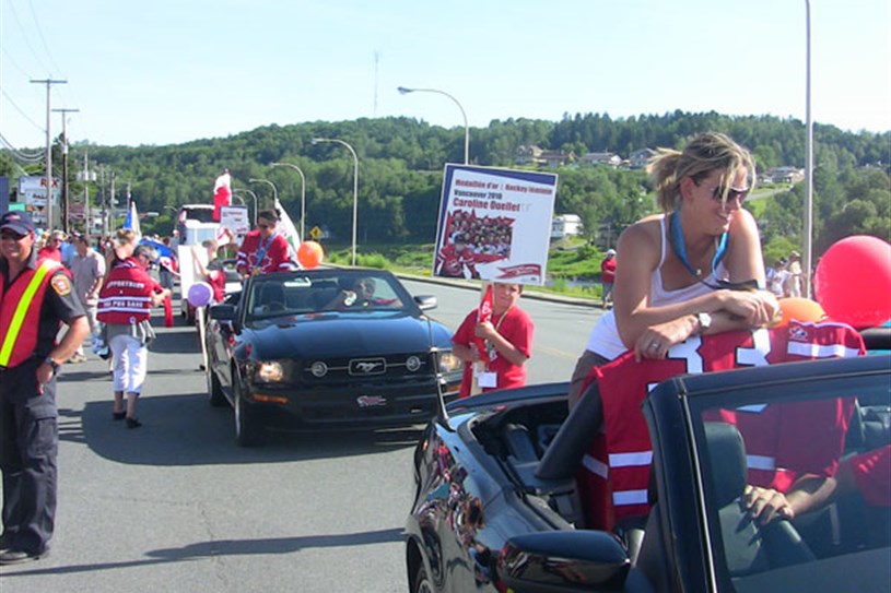 Ce samedi avait lieu le grand défilé des athlètes de Beauceville, qui s’effectuait du Ministère des Transports jusqu’à l’île ronde. Le convoi s’est arrêté devant Place Beauceville pour prendre le temps de présenter chacun des 350 participants. Plusieurs personnalités reconnues dans le monde du sport étaient présentes, notamment la médaillée d’or aux Jeux olympiques de Vancouver pour l’équipe canadienne de hockey féminin, Marie-Philip Poulin, originaire de Beauceville. La parade, orchestrée par Michel Mercier et Yves Walsh, s’est terminée sur l’île ronde où les cérémonies d’usages se sont déroulées, avant de faire place à divers groupes musicaux.