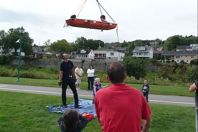 Un camion échelle du service d’incendie de Saint-Joseph était sur les lieux, faisant vivre aux gens intéressés la réelle sensation d’un sauvetage via la civière suspendue. Une démonstration d’utilisation des pinces de désincarcération (mâchoires de la vie) a été présentée pour satisfaire la curiosité des chanceux qui n’assisteront jamais à leur utilisation en temps réel.